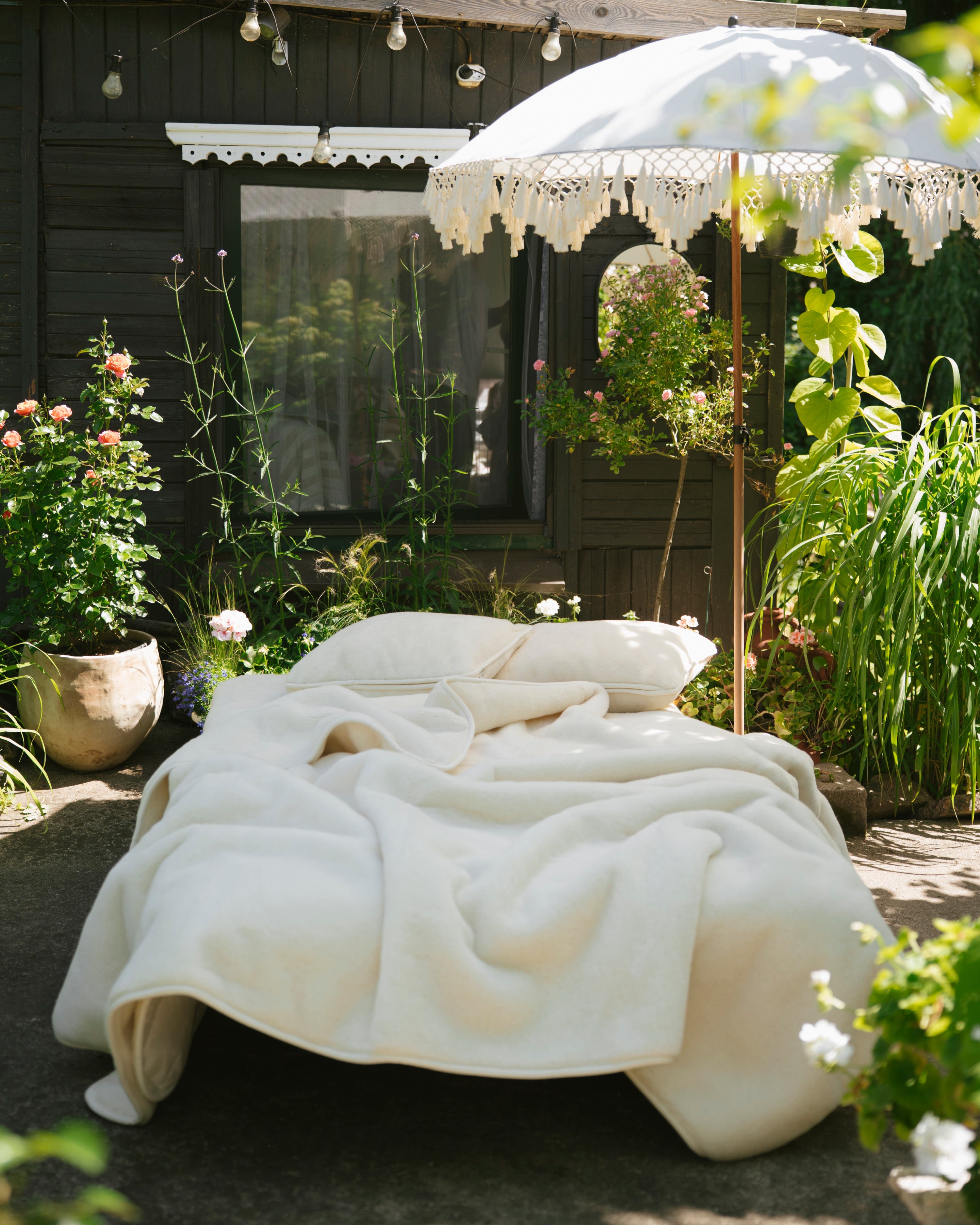 Ihr heller Cremeton und die seidige Oberfläche schaffen eine ruhige, elegante Atmosphäre. Sie liegt sanft auf der Haut und verwandelt selbst einfache Momente in etwas Besonderes.