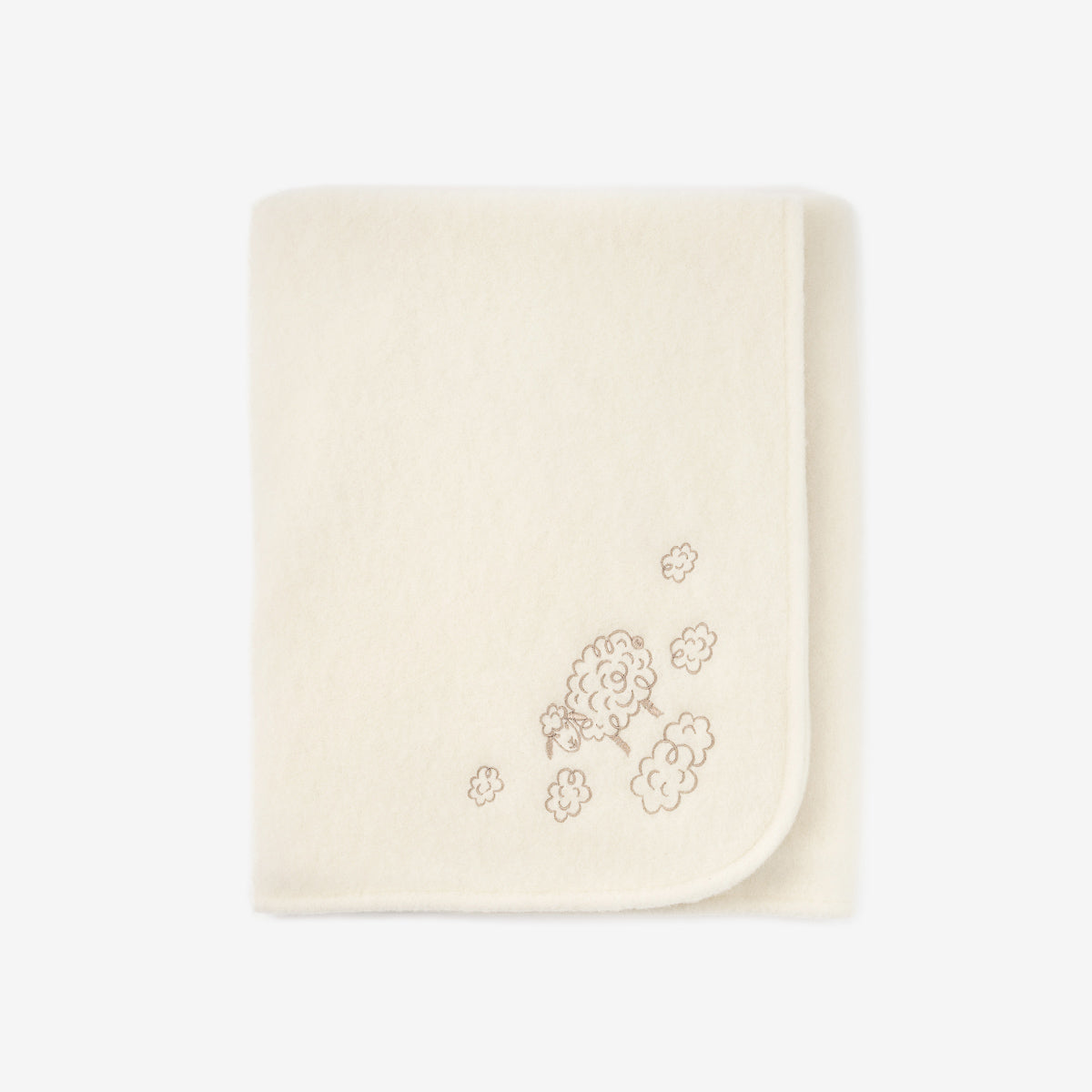 Jede Decke wird in Europa aus zertifizierter Merinowolle gefertigt. Der ruhige Beigeton passt wunderschön in jedes Kinderzimmer, und das kleine bestickte Schaf verleiht ihr einen liebevollen, verspielten Akzent. Ideal für das Kinderbett, den Kinderwagen oder für gemeinsame Kuschelzeiten.