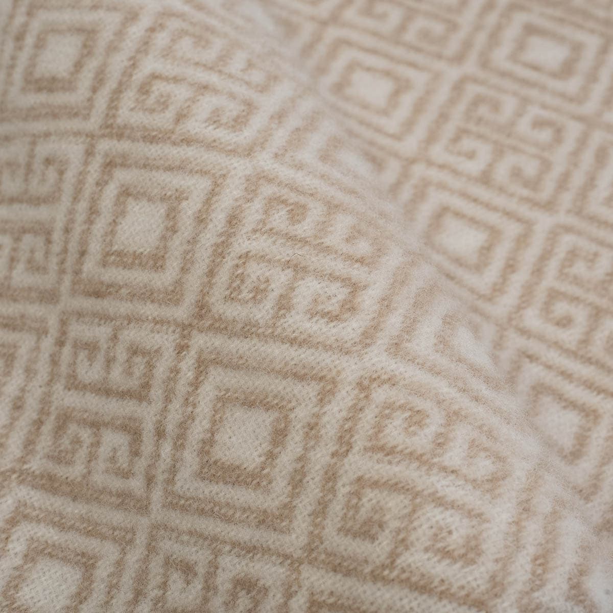 Das geometrische Muster in Creme und Braun verleiht ihm einen Hauch klassischer Eleganz, bleibt dabei aber natürlich und ruhig. Es passt sowohl in moderne als auch in rustikale Räume und sorgt sofort für eine einladende Atmosphäre.